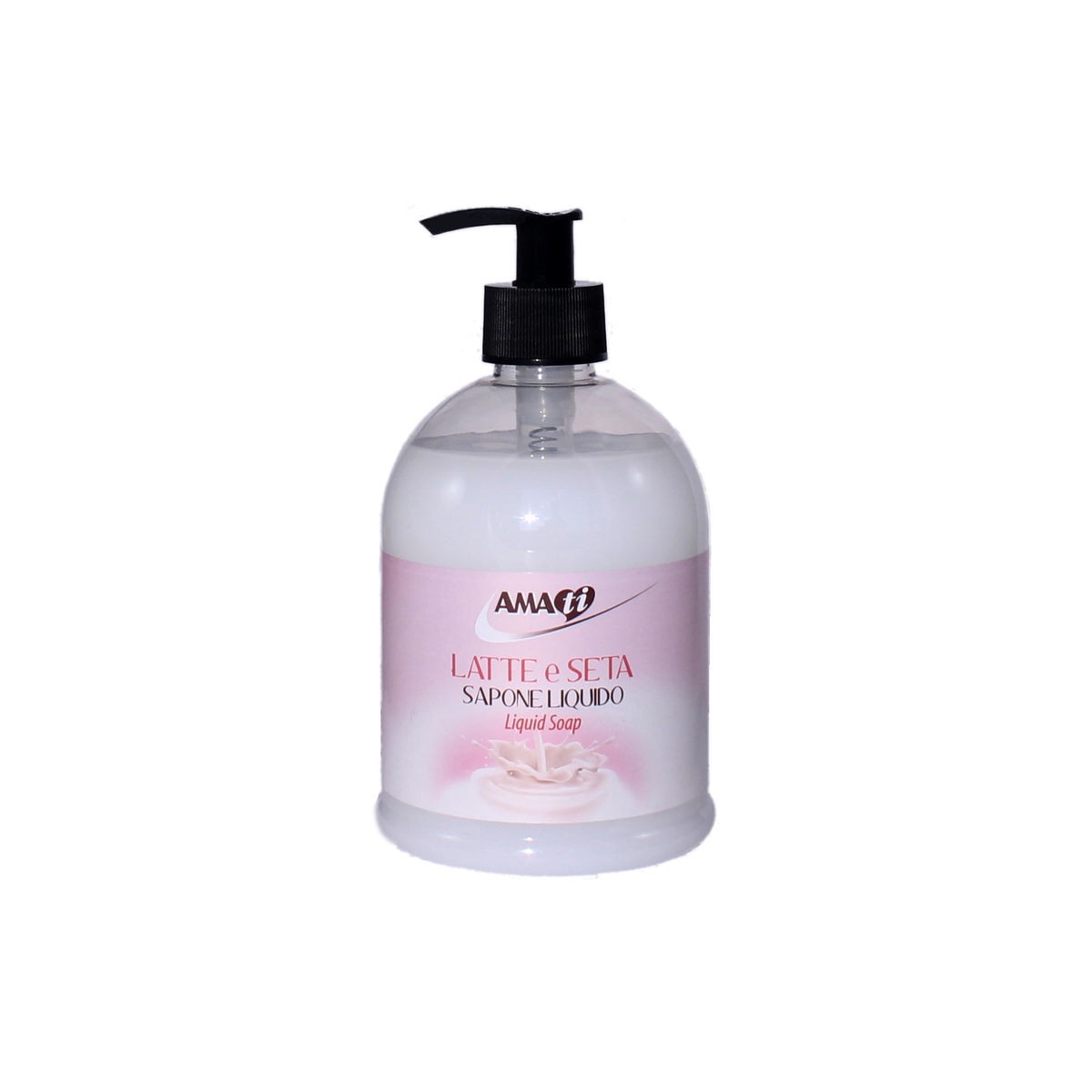 Sapone liquido Latte e Seta in flacone da 500 ml con erogatore. Imballo da 12 flaconi.