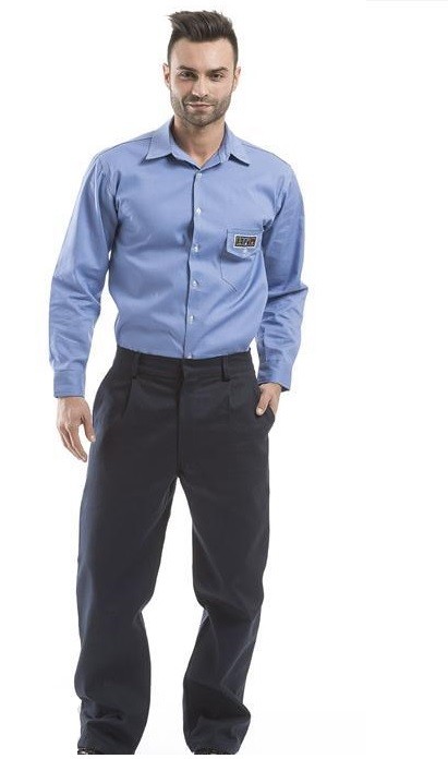 Tessuto 270 gr.mq. Cotone 75%, poliestere 24%, fibra dissipativa 1%.