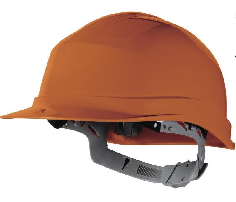 Elmetto da cantiere polipropilene (PP) o polietilene alta densità (HDPE), trattato anti-UV. Cuffia polietilene (LDPE), con 8 punti di fissaggio. Frontalino spugna. Chiusura a fibbia regolabile : girotesta da 53 a 63 cm. Elmetto dielettrico (isolamento fino a 1000 VAC o 1500 VCC). Foro standard per accessori. Punti di ancoraggio per sottogola a 2 o a 4 punti.