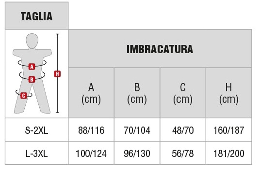 REGOLAZIONE: Bretelle: due fibbie in acciaio zincato, Sternale: una fibbia in acciaio zincato, Cosciali: due fibbie in acciaio zincato.