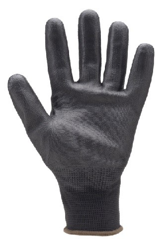 Maglia senza cuciture a base di poliestere nero, Spalmatura del palmo in PU nero. Polsino in maglia