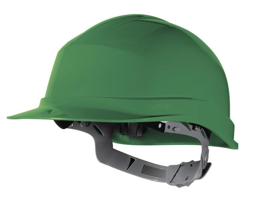 Elmetto da cantiere polipropilene (PP) o polietilene alta densità (HDPE), trattato anti-UV. Cuffia polietilene (LDPE), con 8 punti di fissaggio. Frontalino spugna. Chiusura a fibbia regolabile : girotesta da 53 a 63 cm. Elmetto dielettrico (isolamento fino a 1000 VAC o 1500 VCC). Foro standard per accessori. Punti di ancoraggio per sottogola a 2 o a 4 punti.