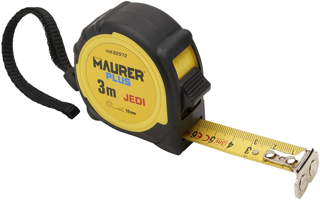 Flessometro MAURER PLUS mod. JEDI - nastro in acciaio smaltato rivestito in nylon con bloccaggio e rientro automatico