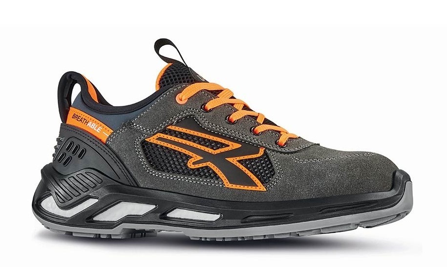 Scarpe antinfortunistiche basse, leggere e comode U-Power della linea Red 360, con tomaia in nylon ultra traspiranti e morbida pelle scamosciata, collarino con tessuto in fibra Lycra®, tallonetta anti-shock, puntale in alluminio, antiperforazione, antiscivolo e suola PU/PU infinergy.