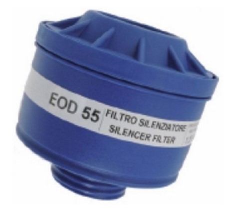 Il filtro silenziatore EOD55 riduce il rumore dovuto al flusso dell’aria e nello stesso tempo elimina particelle e odore eventualmente presenti nell’aria compressa che comunque deve essere respirabile secondo EN 12021.