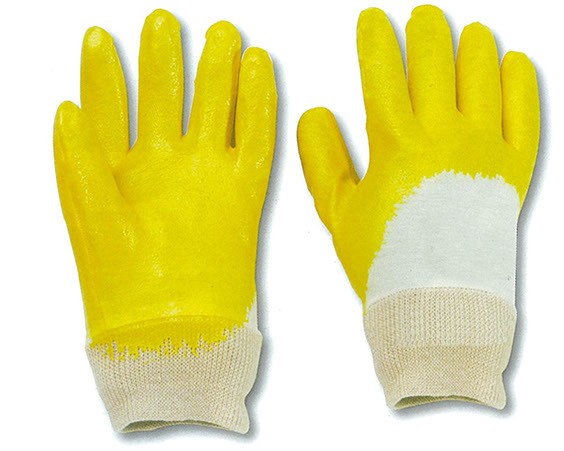 Guanto NBR giallo, con dorso areato e polsino in maglia.