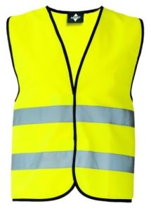 Gilet di sicurezza di alta qualità con bordo nero su tutte le varianti colori 2 fasce riflettenti trasversali , misura regolabile grazie alla doppia chiusura con velcro confezionato singolarmente in una pratica borsa in polietilene CERTIFICAZIONI EN ISO 20471:2013 + A1:2016 Oeko-Tex® Standard 100.