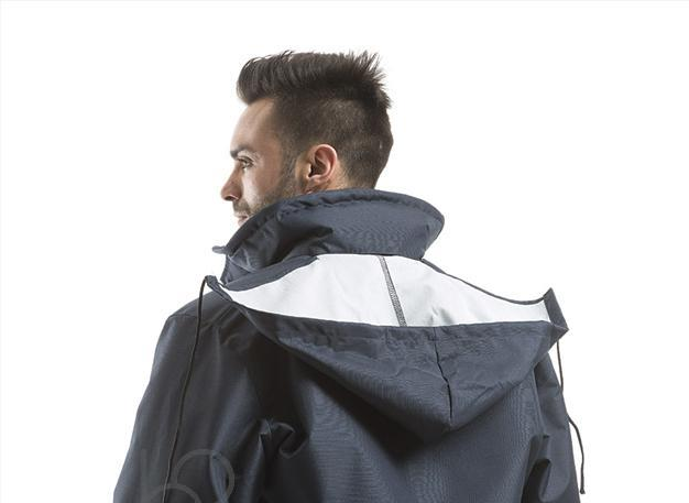 Giubbotto chiusura con cerniera in plastica ricoperta da patella con velcro alle estremità.