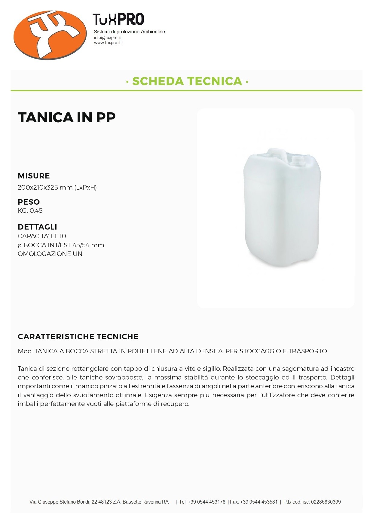 Tanica di sezione rettangolare con tappo di chiusura a vite con sigillo.