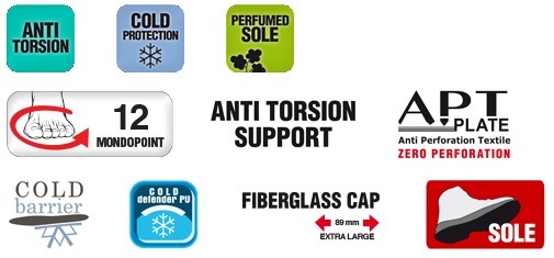 SOLETTA: COLD BARRIER, anatomica, antistatica, profumata, isolante dalle basse temperature, rivestita in tessuto felpato. Il comfort termico all’interno della calzatura è assicurato grazie alla speciale mescola di poliuretano messa a punto per garantire isolamento dal freddo