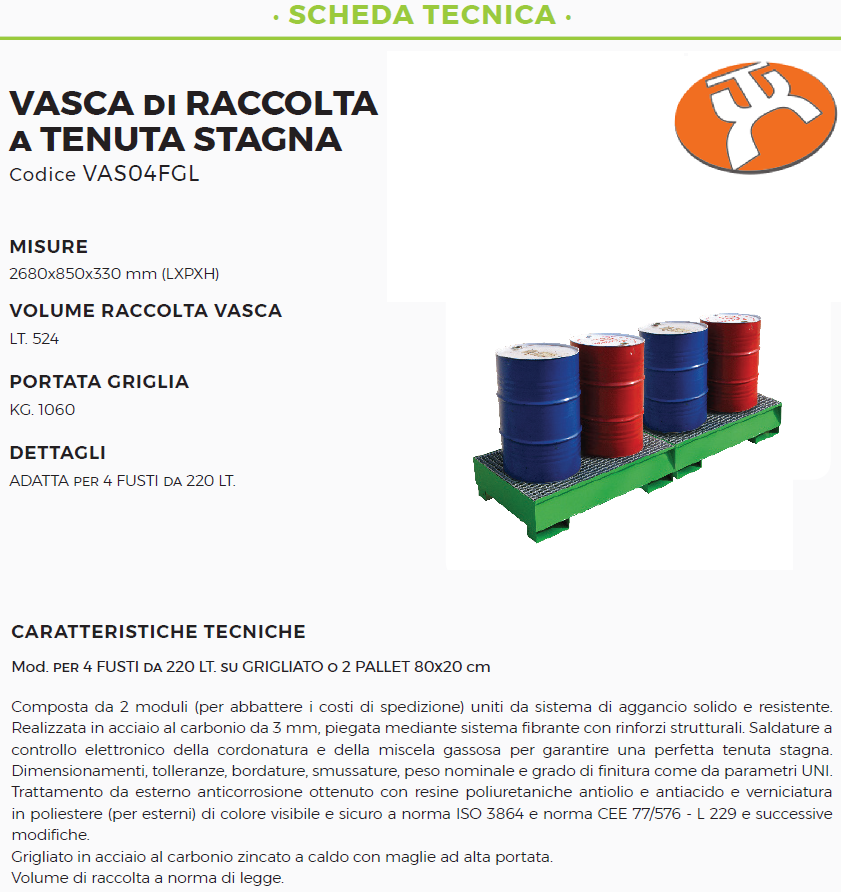 Trattamento da esterno anticorrosione ottenuto con resine poliuretaniche antiolio e antiacido e verniciatura in poliestere (per esterni) di colore visibile e sicuro a norma ISO 3864 e norma CEE 77/576 – L 229 e successive modifiche.